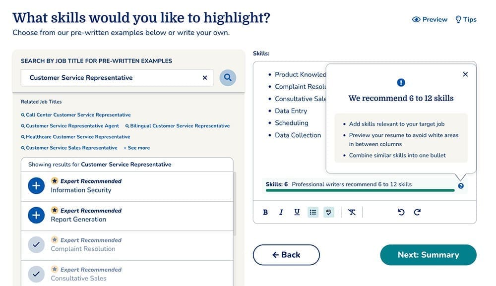 Even the best resume builder will not replace your personal input. To get the strongest results:
